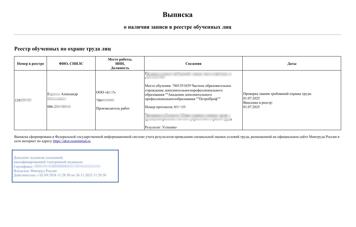 Курс позволяет получить новые знания, применимые в повседневной работе, и пройти итоговую аттестацию с оформлением необходимых документов. После успешного завершения обучения слушатели получают удостоверение установленного образца. Для многих профессий, связанных с управлением персоналом или выполнением опасных работ, такое обучение является обязательным требованием.